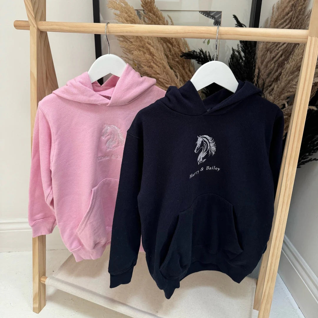 Perfect for young riders, our Personalised Kids Horse Hoodie is designed for comfort and style, with the option to add the rider and horse’s names for a truly unique touch.